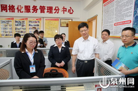 5月5日上午,市委书记、市长康涛到德化调研。图为他在龙浔镇社区网格化服务管理分中心了解网格化管理的运作情况。(陈起拓 摄)