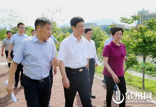 5月5日下午,市委书记、市长康涛到永春调研。图为他走访桃溪生态绿化带,了解桃溪流域河长制工作开展情况。(陈起拓 摄)