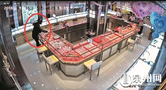 泉州网9月12日讯(记者 陈玲红 文/图)10日晚上9时许,在南安市水头镇发生一起抢劫案。一名全身穿黑色衣服的蒙面男子拿着锤子,径直走进镇区夏盛路一家金店,抡锤就砸,将一个L型柜台的玻璃砸碎后,抢走里面的金饰,随后与在门口接应的同伙乘摩托车逃跑。昨日下午,南安警方发出通报,案发6小时后,两名嫌疑人在晋江安海一宾馆内被抓获,市值约5万元的金饰全部追回。