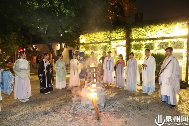 今晚中秋,在泉州源和1916,由中国闽台缘博物馆、中共泉州市委宣传部、泉州市文学艺术界联合会、台湾民主自治同盟鲤城支部、泉州市闽南文化促进中心、泉州市思源闽南文化交流中心联合举办中秋习俗体验活动,200多名来自全国各地的年轻人身穿汉服一起拜月、博饼和烧塔仔等民俗文化活动,一起过了别样的传统佳节!(陈英杰 摄)