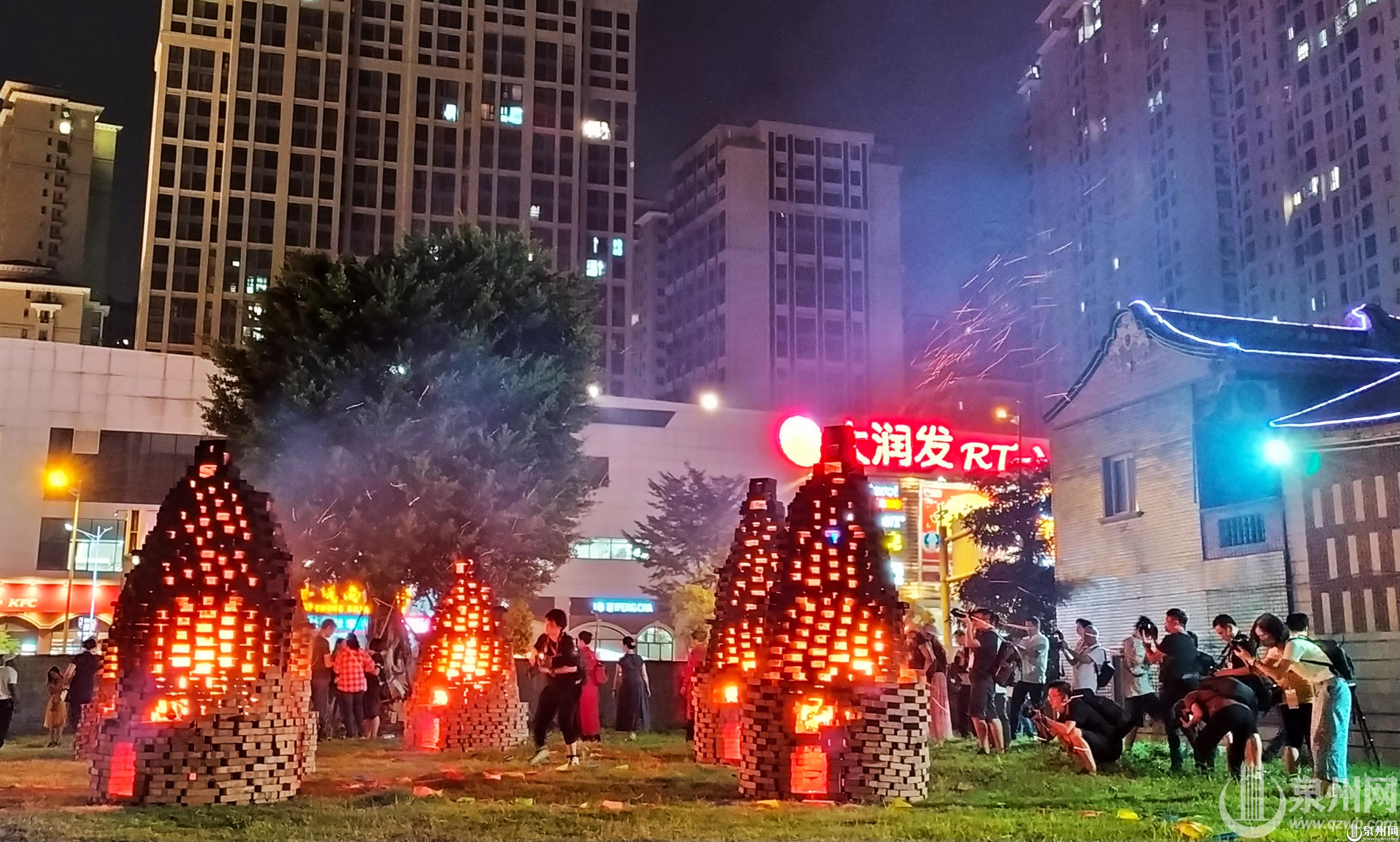 晋江市(安海)第四届中秋文化节—烧塔仔民俗活动今晚举行。(黄祖祥 摄)