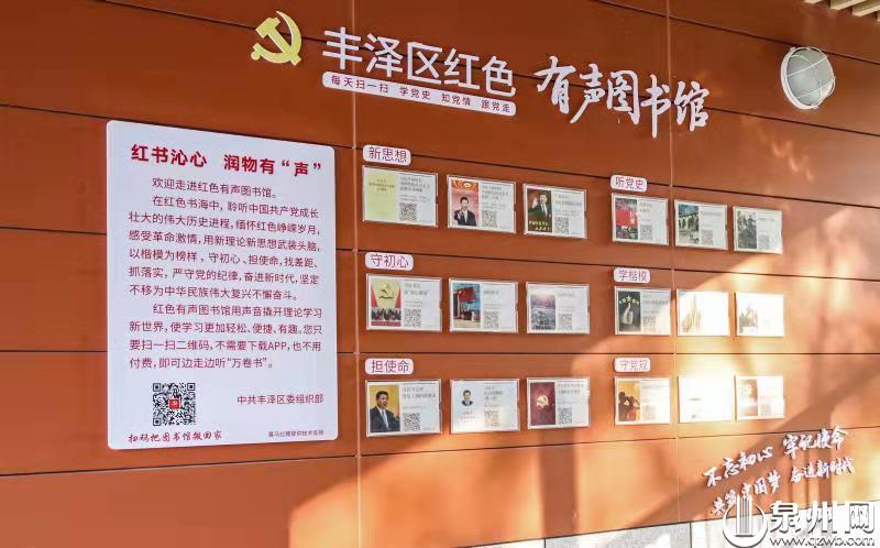 除了打造红色教育主题公园外,近段时间以来,丰泽区街道、社区和非公企业党组织还搭建了100个红色“有声图书馆”,集“红色空间”“有声阅读”为一体,链接“总书记讲话""十九大精神""党史党情""楷模故事”等906本红色有声书,不限时提供音频课程,党员群众扫码免费学、随身听,开通GPS定位功能,实时记录每个党组织学习情况,用声音撬开理论学习新世界。