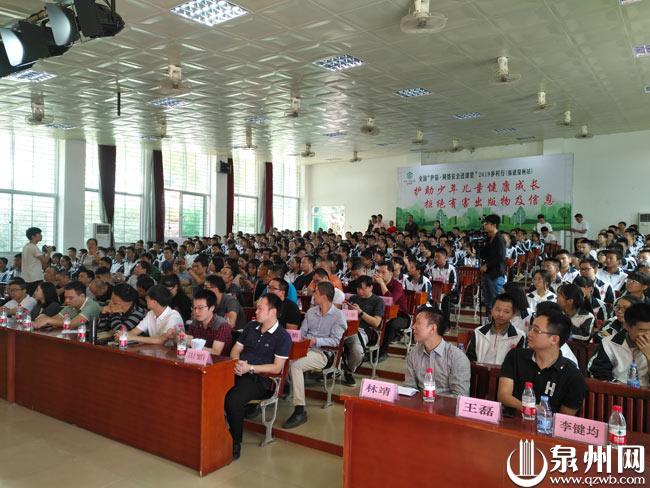 泉州网10月23日讯(记者王树帆 曾聪虹 通讯员李纪平)23日,由全国“扫黄打非”办指导,省“扫黄打非”办、腾讯公司主办,市“扫黄打非”办、洛江区“扫黄打非”办和奕聪中学承办的全国“护苗•网络安全进课堂”2019乡村行福建泉州站活动举行,泉州市各县(市、区)“扫黄打非”办和教育局工作人员、部分学校教师从四面八方汇聚在一起,和泉州奕聪中学的学生们一同参与网络安全课堂的学习。