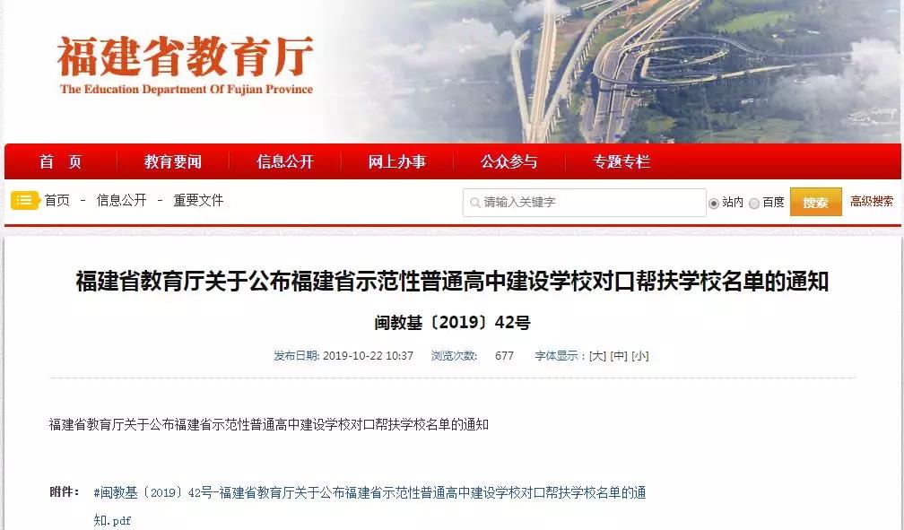 日前,省教育厅公布福建省示范性普通高中建设学校,对口帮扶学校名单,泉州市11所示范高中各对口帮扶一些初中、高中校,帮扶周期与示范高中建设周期同步,到2021年底结束。