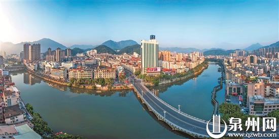 经过综合治理,永春桃溪流域实现水清河畅景美。图为流经永春县城的桃溪水与县城景观构成一道美丽的风景。 (陈小阳 康庆平 摄)
