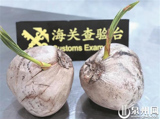 泉州网11月29日讯 (记者刘倩 通讯员郑威廷 文/图)日前,泉州海关驻晋江办事处在泉州晋江国际机场截获椰子种苗,这是该空港口岸对外开放以来首次截获此类种苗。