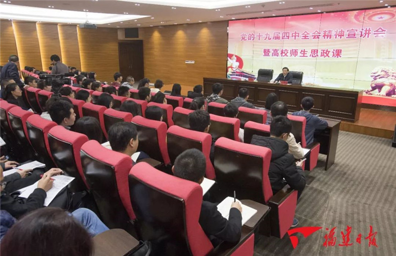 5日中共福建省委十届九次全会刚刚闭幕6日省委书记于伟国就来到福州大学宣讲党的十九届四中全会精神为青年学生上思政课。福建日报记者张永定 摄