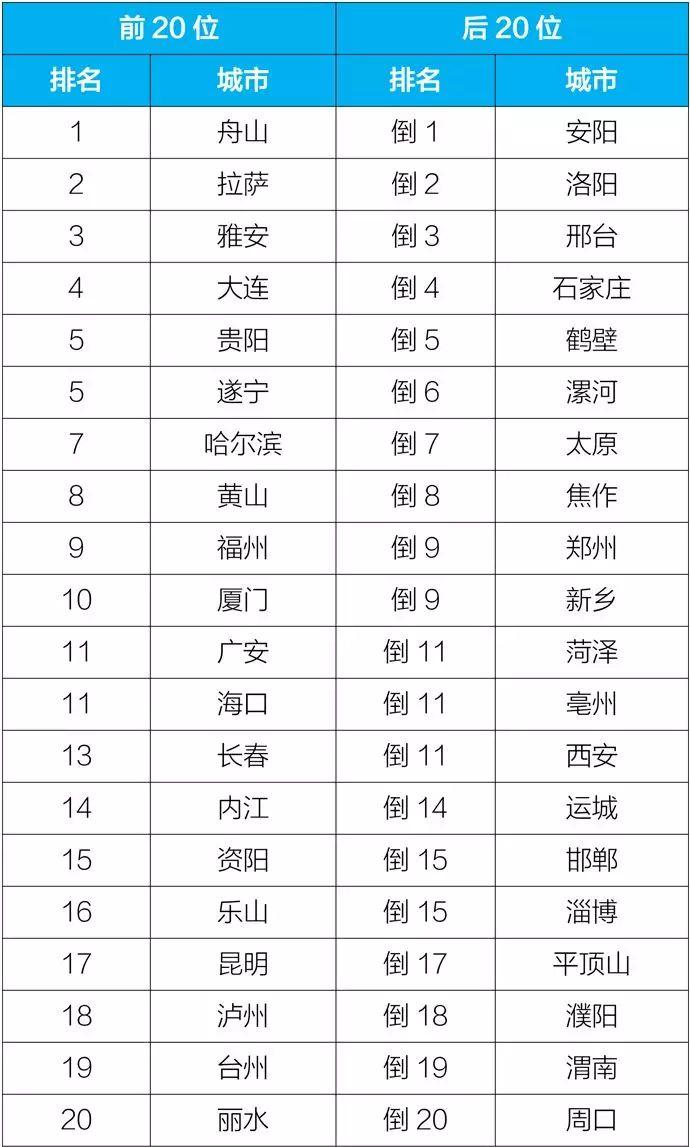 2019年11月,168个重点城市中安阳、洛阳、邢台市等城市空气质量相对较差;舟山、拉萨、雅安市等城市空气质量相对较好。