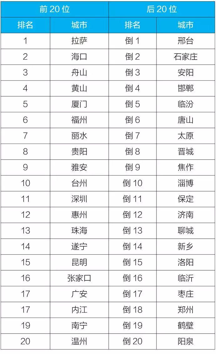 2019年1-11月,168个重点城市中邢台、石家庄、安阳市等城市空气质量相对较差;拉萨、海口、舟山市等城市空气质量相对较好。