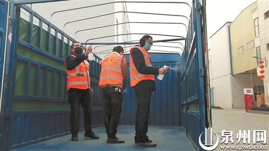 除了生产型企业之外,为了确保物资输送畅通,泉州顺丰运输有限公司以福建本地人为主的2000多位员工也已到岗。相关负责人介绍说,任何与防疫工作相关的物资都提前优先配送,为了确保防疫工作万无一失,公司提出7方面要求:建立地区防疫小组,统一部署,统一防范;所有网点采购配置口罩、体温计、消毒液、消毒工具;场地每天消毒,每个营业场地、分拨中心每日消毒两次,早班结束后及晚班结束后完成消毒;每日完成对所有运营车辆消毒;每日对所有在岗人员完成体温测量,对重点区域(负责医院、农贸市场区域员工)需测量2次;每日随时收集员工返乡情况,特别针对回武汉、回湖北或经过武汉的返乡人员;同时每日收集员工家属情况,特别对有从武汉返乡的家属进行关注,及时上报。