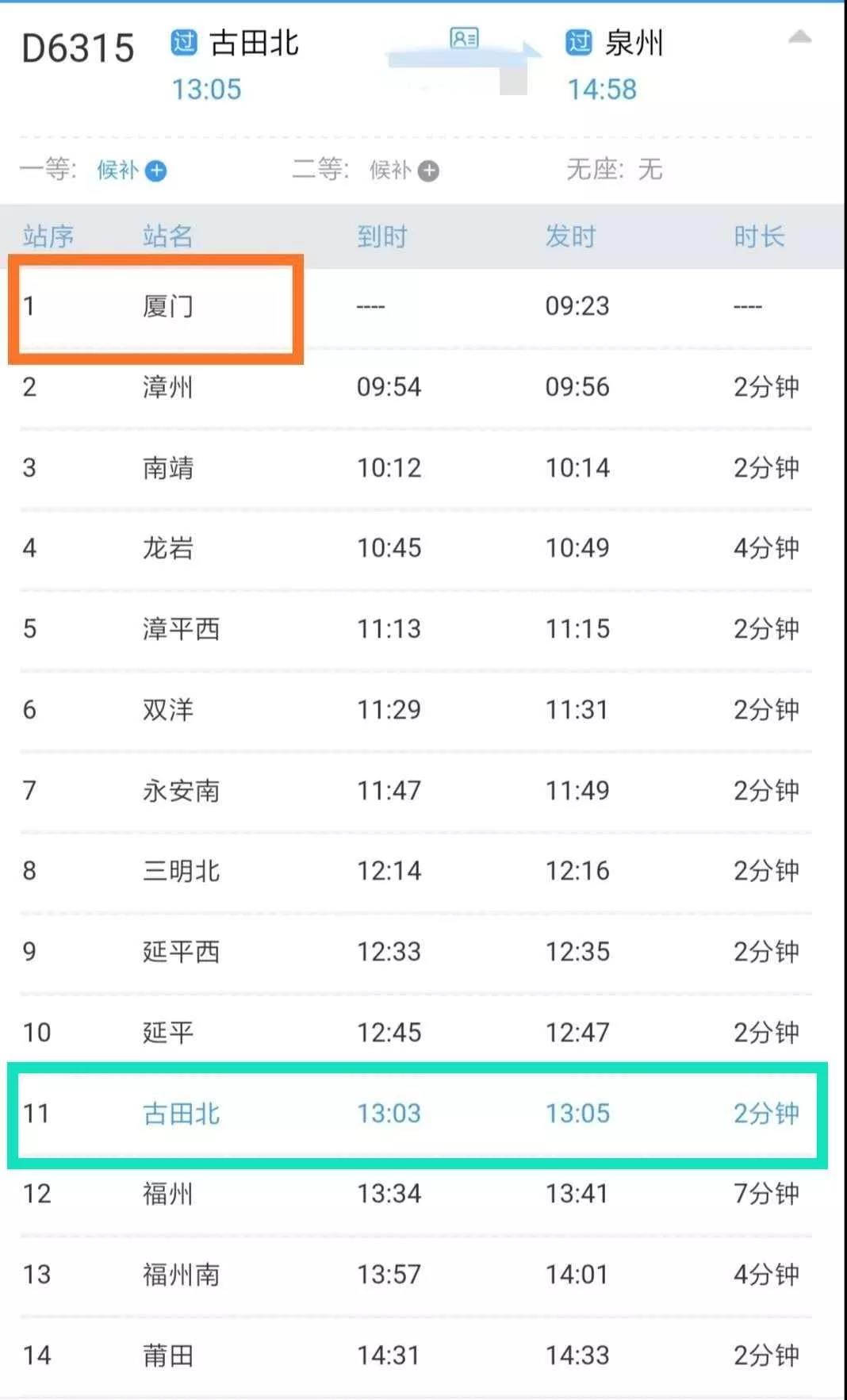 注意!这位患者在省内乘坐的这两趟列车,一趟厦门是起点,一趟是环形动车(D6315)起点终点均为厦门。