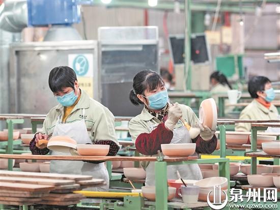 陆升集团主产日用陶瓷,2019年产值达2亿元,工人710名,其中外来员工近100人。公司原计划2月2日就开工,许多订单年前就已排定,目前正在加紧安排生产。“现在返厂员工580多人,都为德化本地员工,并且没有外出旅行等情况。”郑富垚说,目前产能恢复了70%,接下来,随着防疫工作扎实推进,返岗员工还会增加,为公司加足马力生产不断注入动力。