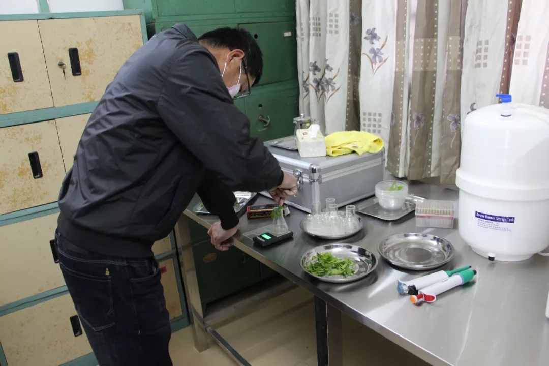 工作人员在进行蔬菜的农残检测