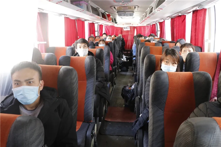 跨越1650公里,连续行驶20小时,虽然此次返岗路途遥远,但员工们的脸上都带着“回家”的期待和喜悦。“非常感谢政府和公司派专车来接我们上班,路上基本没停,又是消毒、测量体温,这样的定制包车让我们很安心。”返岗员工林武法说道。