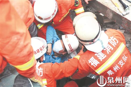 现场救援时,小王的母亲被埋压较深,且被卡区域狭小,身体被沙发、水泥板困住,右脚被不锈钢窗户和梁柱夹住。“我儿子安全了,谢谢你们,我快坚持不下去了。”尽管医护人员给她输液补充体力,她得知儿子安全后,有点坚持不住,有些许放弃的念头。