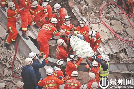 泉州网3月11日讯(记者 黄墩良 廖培煌 王金植)只要有一丝希望就必须作出百倍努力!昨日下午,在事故现场,受困69个小时33分的一名男子获救,救援再创奇迹。被救出时,该男子意识清晰,还挥手示意,说自己“24岁,温州人”。