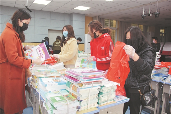 丰泽区中小学为学生免费邮寄教材,老师变身“分拣员”分装教材。