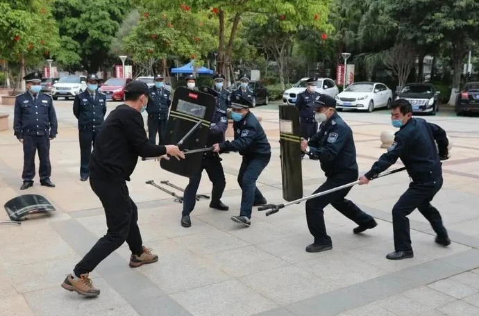 厦门双十中学的演练联合了枋湖、镇海两个校区属地派出所公安干警,模拟了发热症状人员不服从临时隔离管理,冲撞进校或逃离校门等突发情况和极端暴力人员蓄意入校实施暴力侵害等情况。