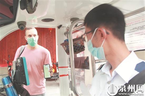 泉州网7月27日讯(记者陈小芬 通讯员蔡文强 文/图)“How much is it?”“It is two yuan. You can pay with WeChat or cash.”7月26日下午,在泉州市区的天后宫门口,一位外国友人准备搭乘社区公交“小白”前往关帝庙,司机陈晓东正用英语与其对话。