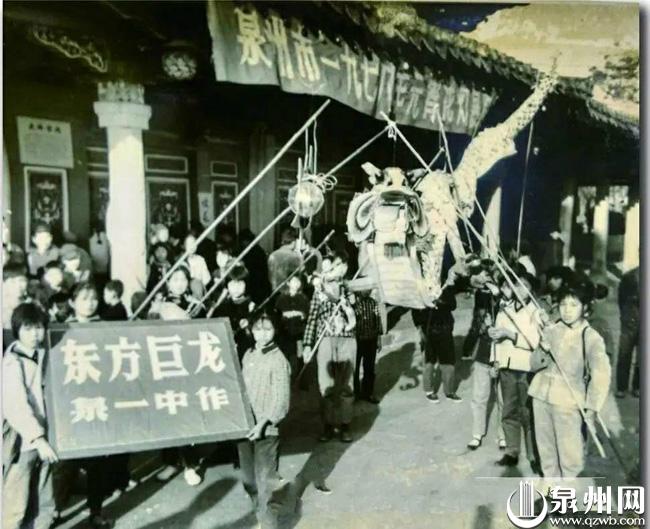 1978年开元寺内的元宵花灯展上,泉州一中制作的“东方巨龙”花灯。(蔡其呈/供图)
