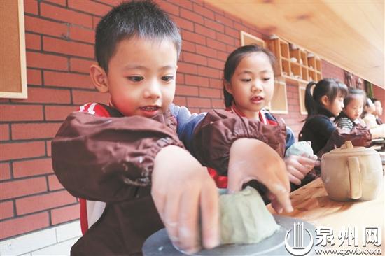 德化县第二实验幼儿园的孩子体验陶瓷文化 (叶文阳 摄)