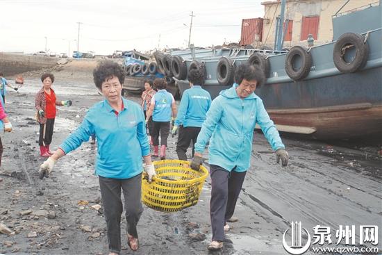 当各处海边游客尽情游玩时,还有一群人弯着腰、低着头,默默地捡拾海滩上的垃圾。近日,石狮市祥芝美丽海岸志愿者协会组织了68名志愿者,在祥芝祥农码头西海滩开展“全民迎中秋庆国庆 环保文明伴我行”净滩活动。他们先将垃圾捡到箩筐中,再合力搬运到堤坝上清运走。“清理垃圾最适宜的工具还是箩筐及渔民装鱼的鱼篮,因为海滩垃圾又沉又裹着泥沙,用塑料袋装容易破损,而且大量使用塑料袋不环保,弊病多多。竹筐、鱼篮可以在装完垃圾后冲洗一下反复使用,省钱又环保。”该协会会长蔡加渐告诉记者。遇到大型废弃轮胎,他们则绑上麻绳合力拖上岸。据统计,当天共清理4吨垃圾,包括7个大型轮胎和3个汽车轮胎。