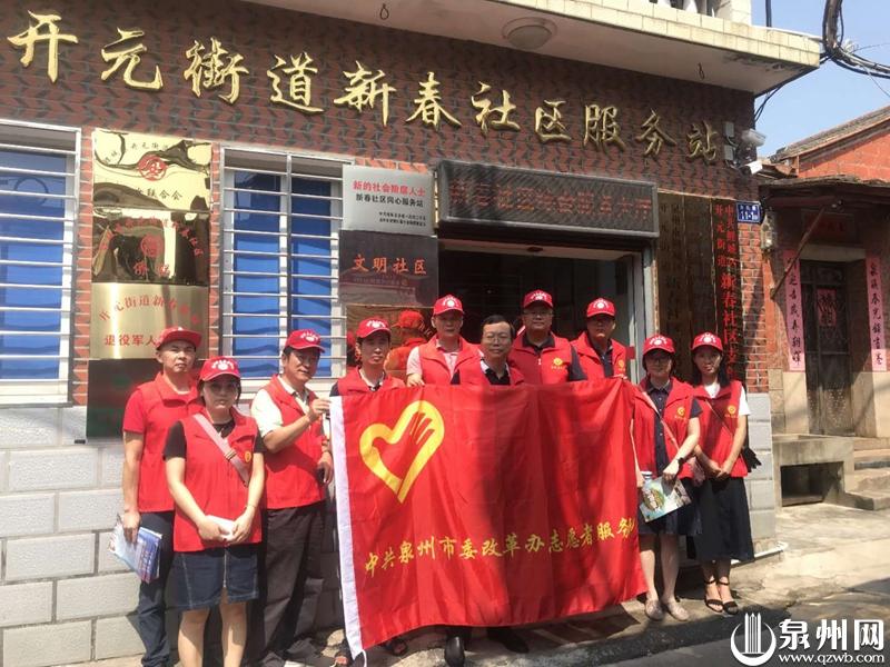 与鲤城区开元街道新春社区开展文明共建,深入社区开展志愿者服务。(市委改革办供图)