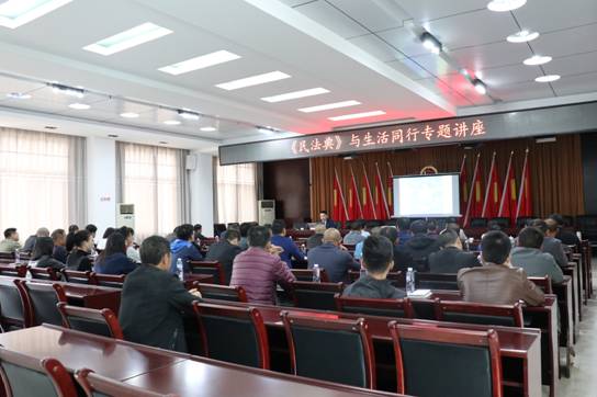 讲座课上,张照东硕导结合其深厚的法律知识、丰富的人生阅历和大量的生动案例就《民法典》的诞生、《民法典》影响我们生活的哪些方面,从基本原则、总则编、物权编、合同编、人格权编、婚姻家庭编、继承编、侵权责任编等方面进行了全面解读,对镇、村干部深入理解《民法典》,正确把握《民法典》精神,推动《民法典》的贯彻实施,进一步推进“法治美湖”建设具有很强的指导意义。