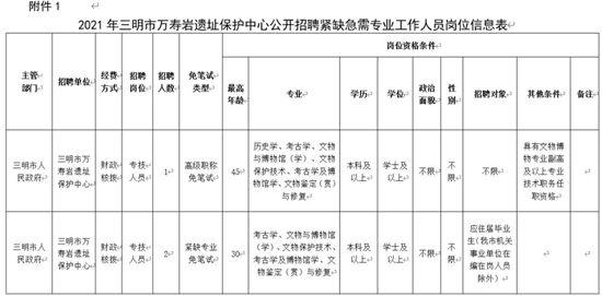 2021年三明市万寿岩遗址保护中心拟面向社会公开招聘高级职称专业技术人才1名、紧缺急需专业高校毕业生2名。