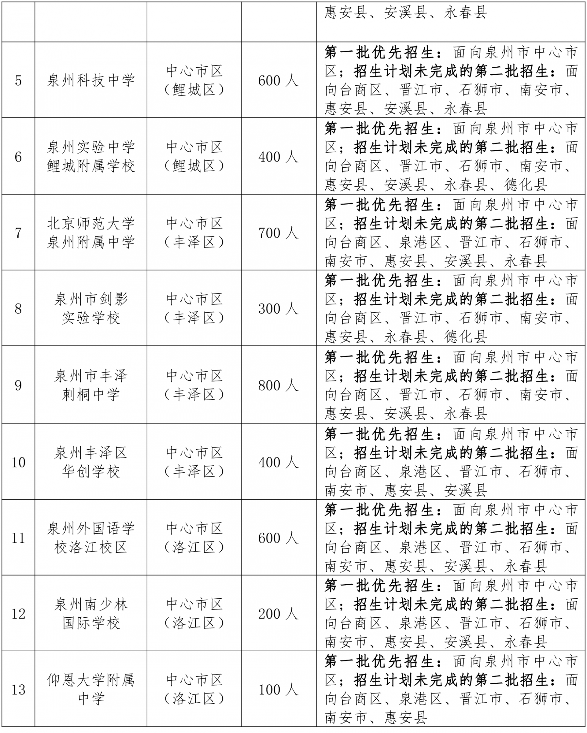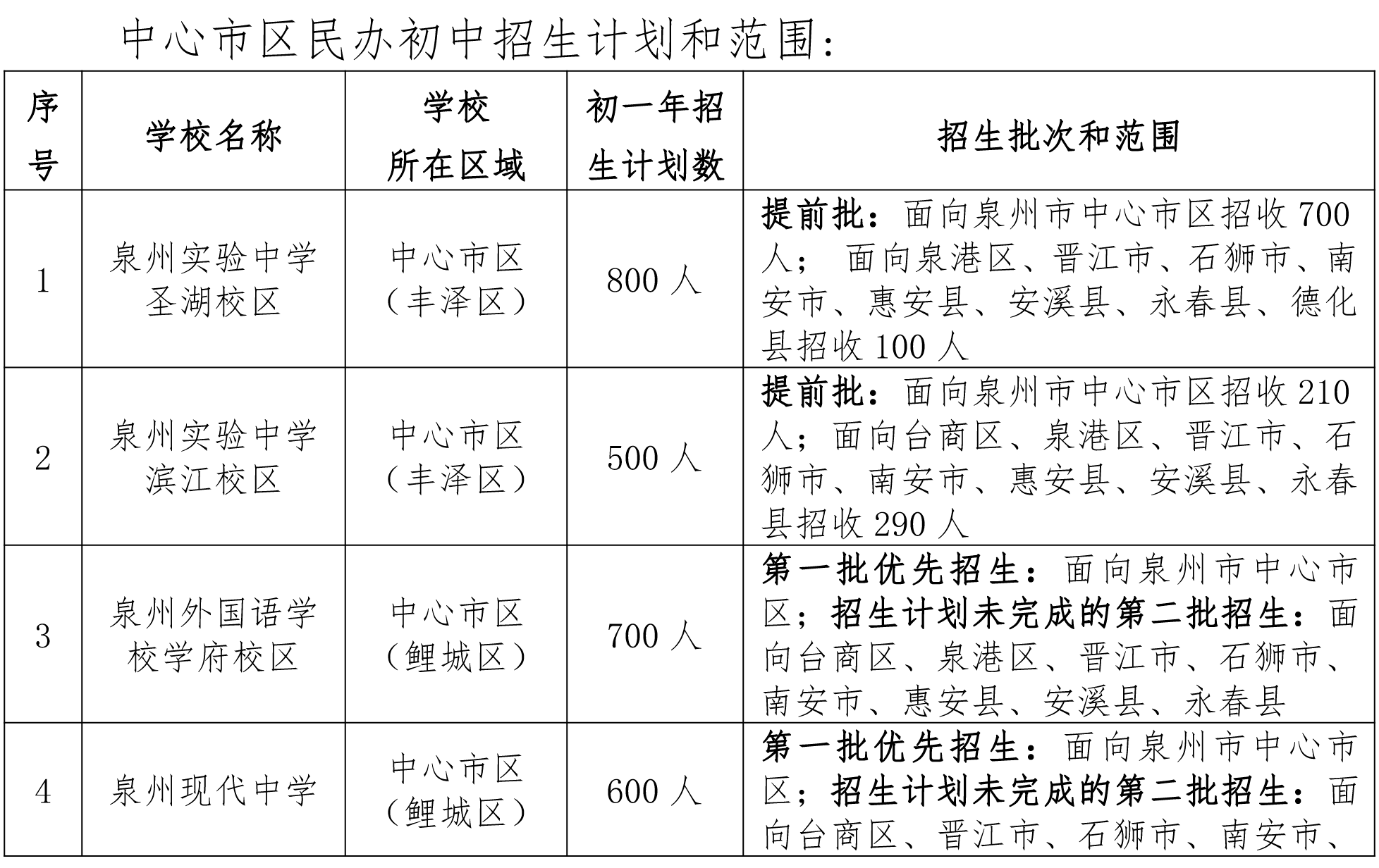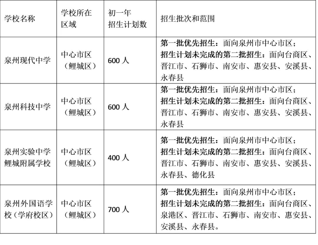 1.户籍关系在城东街道、华大街道的小学毕业生由泉州市城东中学对口招生。