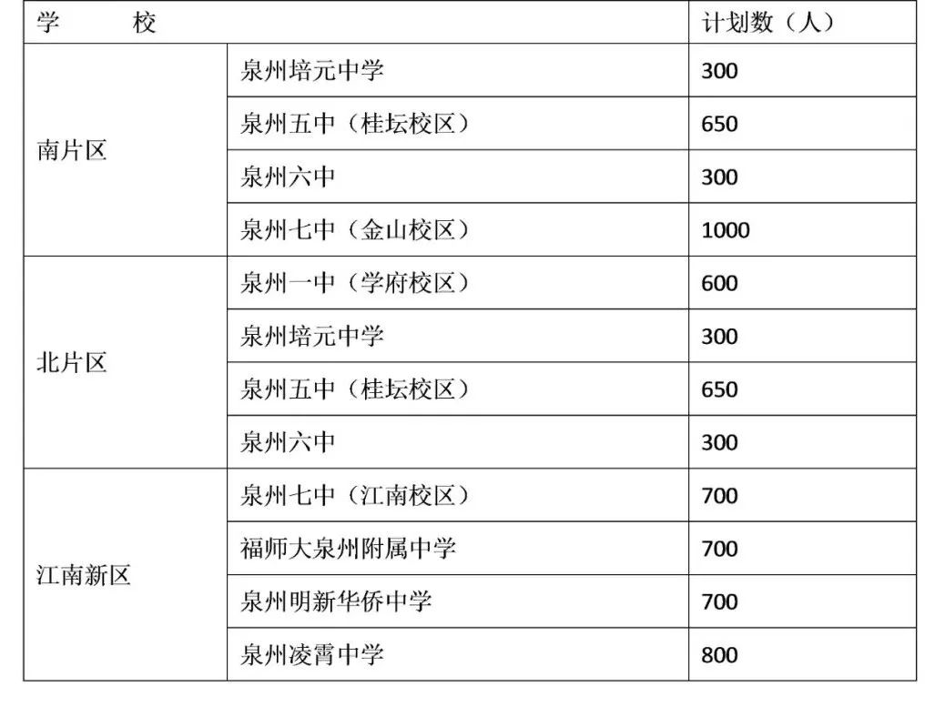 自2022年秋季起,福师大泉州附中和泉州七中江南校区片区的招生办法,视当年度片区内应届小学毕业生及招生计划数情况,适时进行调整。