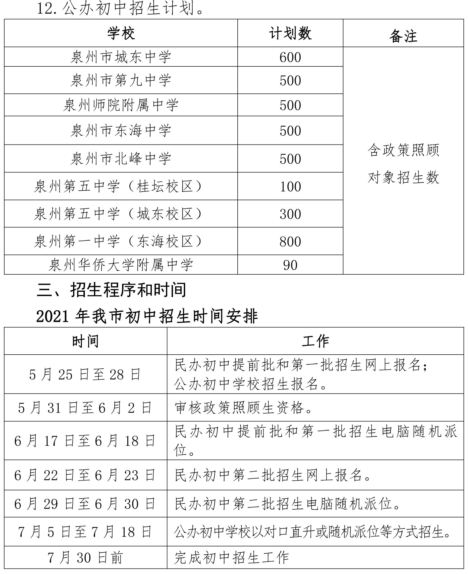 泉州网5月20日讯(记者 曾聪虹)昨日,丰泽区公布了《2021年秋季初中招生工作实施意见》,明确了公办初中、民办初中的招生计划和招生办法。