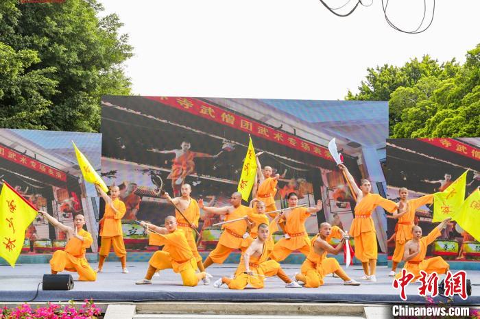 泉州少林寺武僧们展示少林武术文化魅力。 孙虹 摄