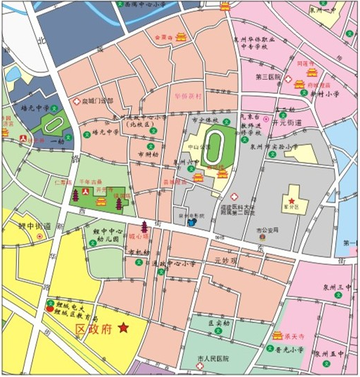 东至南段新街以西、 北段北门街以西。南至东段后孝悌巷以北、中段炉下埕以北、西段大寺后以北。西至新华北路以东,北至城北路以南。