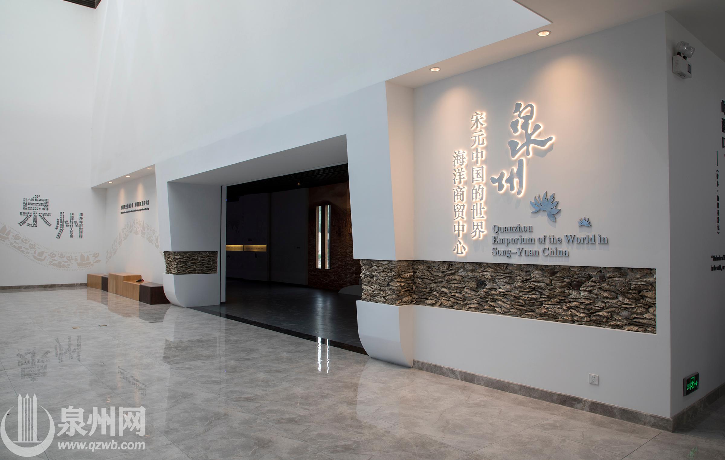 泉州曾是10-14世纪世界海洋贸易网络中高度繁荣的商贸中心之一,它作为宋元中国与世界的对话窗口,展现了中国完备的海洋贸易制度体系、发达的经济水平以及多元包容的文化态度。“泉州:宋元中国的世界海洋商贸中心”展示馆,位于泉州海外交通史博物馆主体楼一层。它通过501套共663件文物展品,图版、视频、互动触摸屏、景箱、场景等多种形式进行展陈,勾勒出22个遗产点(九日山祈风石刻、市舶司遗址、德济门遗址、天后宫、真武庙、南外宗正司遗址、泉州府文庙、开元寺、老君岩造像、清净寺、伊斯兰教圣墓、草庵摩尼光佛造像、磁灶窑址、德化窑址、安溪青阳下草埔冶铁遗址、洛阳桥、安平桥、顺济桥遗址、江口码头、石湖码头、六胜塔、万寿塔)产生的历史背景及丰富的遗产价值,生动反映出泉州具有产-运-销功能高度整合的城乡一体空间结构、完备的制度体系、发达的经济水平、中外风格多元荟萃的聚落景观以及包容的文化态度,展现出历史上不同海域﹑不同国度﹑不同宗教﹑不同族群穿越时空阻隔,多元共存、和谐共处一城的物质和精神遗产,生动展现东亚传统农业文明与世界海洋商业文明间经济与文化发展观的交流与对话。