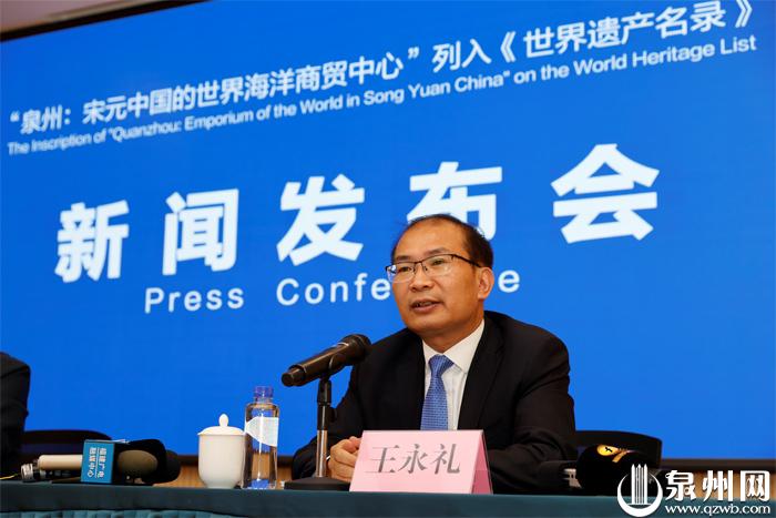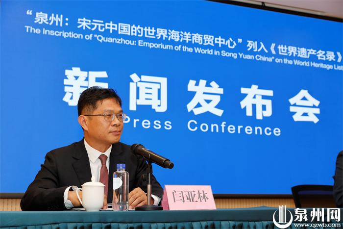 闫亚林介绍了泉州:宋元中国的世界海洋商贸中心”系列遗产价值、申报工作、重大意义及宝贵经验。与会领导还就世界文化遗产研究、保护、申遗、管理等情况回答了媒体记者的提问。