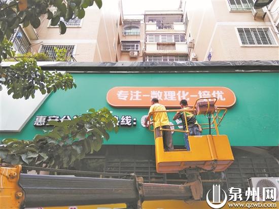 泉州网8月4日讯 近日,惠安县螺城镇联合县教育局、市场监督管理局、公安局、卫健局、城管局、消防救援大队开展校外培训机构专项治理行动,对无证无照校外培训机构和托管机构依法予以取缔,对其户外广告牌予以拆除。同时加大宣传力度,对未经批准、非法开展教学活动的无证培训机构和托管机构进行摸底、曝光;通过各种媒体进行宣传,让家长及时了解专项治理信息,营造良好的社会氛围。图为拆除现场。 (张锦宣 摄)