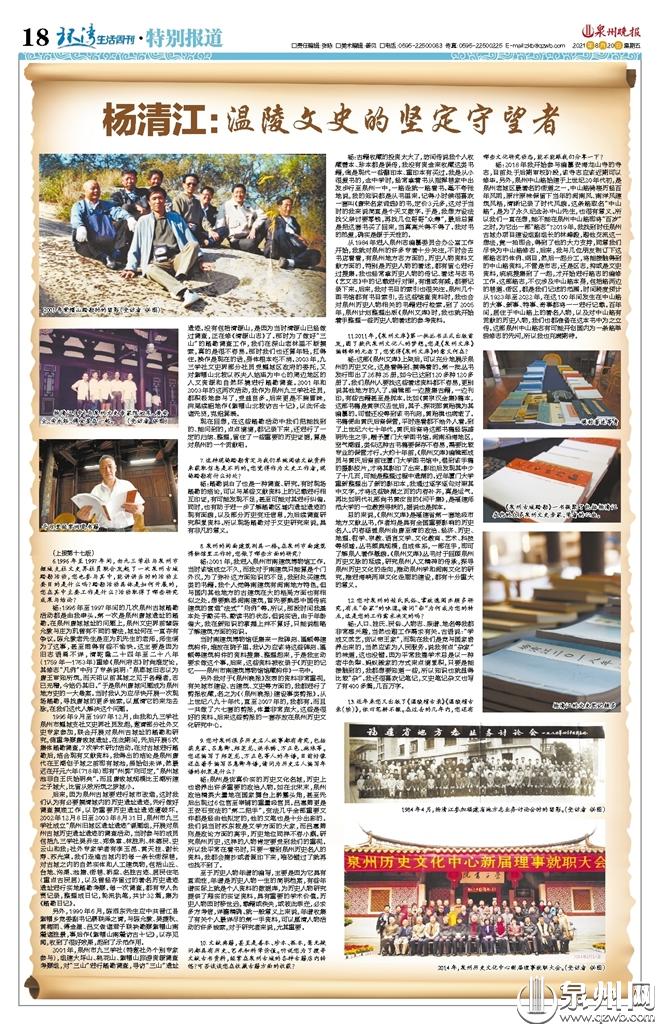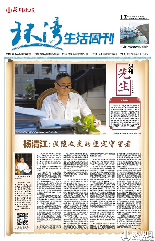 杨:我那时与泉州志编纂委员会办公室的诸位先生相处非常融洽,因为我对他们十分尊重。一旦他们对我有什么差遣,那我肯定是雷厉风行地去办的,这点让他们很满意。我对文史工作有着极高的兴趣,而且“屁股不怕十年冷”,是个坐得住的人,基本是一上班就勤勤恳恳地工作,还时常在夜里加班,写文章写得很勤。