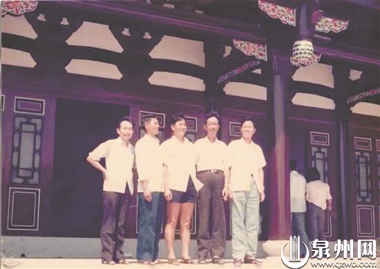 杨清江(中)与泉州文史专家陈泗东、黄安全、安永绥、傅金星在一起。(受访者 供图)