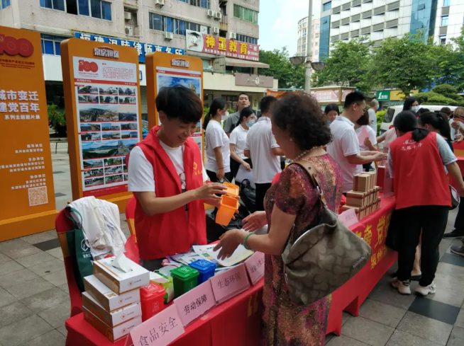 日前,东湖街道铭湖社区党委联合共建单位、企业在轻工电器城开展党史学习教育暨“我为群众做好事”志愿服务活动,发动广大党员干部以身作则,千方百计解决群众实际困难,真心实意为群众办好事实事,吹响了“我为群众办实事”实践活动的号角。