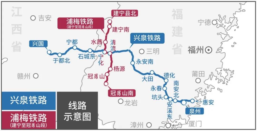 兴泉铁路兴国至清流段、浦梅铁路建宁至冠豸山段的开通运营,结束了宁都、石城、宁化、清流等原中央苏区县不通铁路的历史,对完善福建省铁路网布局,改善福建闽西北地区特别是老区苏区的交通出行条件,带动沿线资源开发、促进经济社会发展具有重要意义。