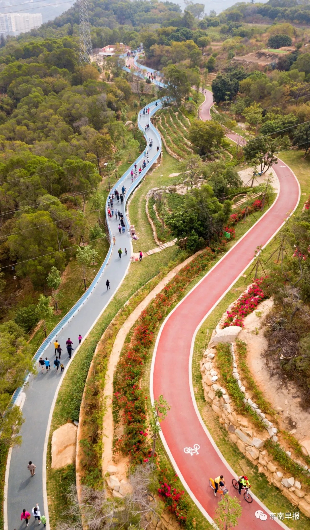 站在山线绿道之上,远处江海交界处依稀可见,近处颇具现代气息的新城尽收眼底;迎着清爽的山风,三三两两的市民游客骑着单车,穿行在蜿蜒曲折的绿道之上,这是何等惬意之事……