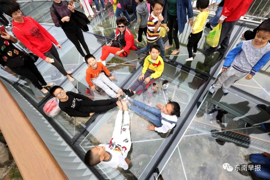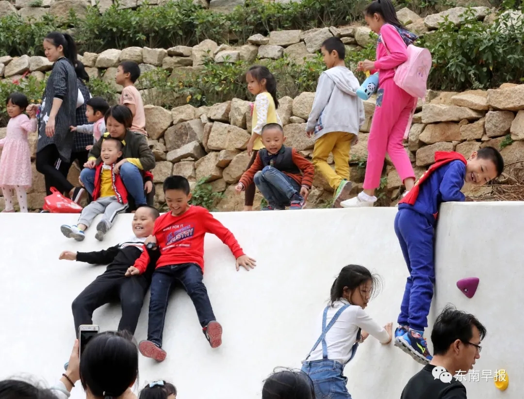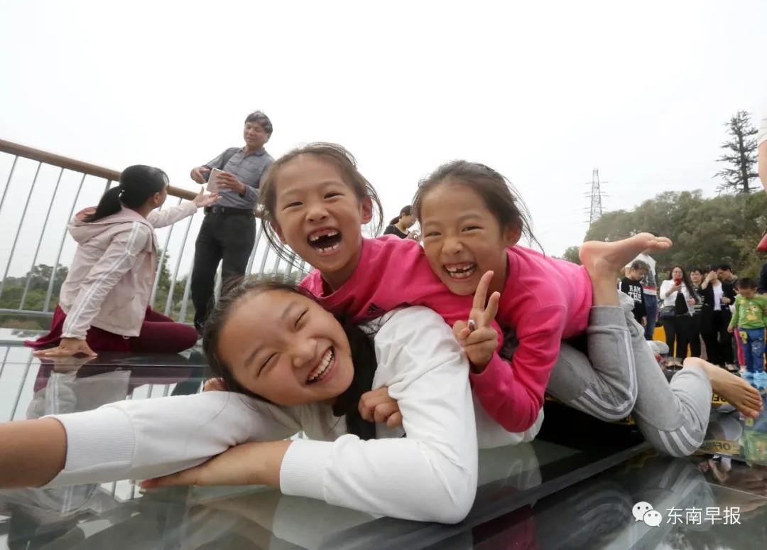 ▲孩子们在空中栈道嬉闹玩耍,玩得不亦乐乎