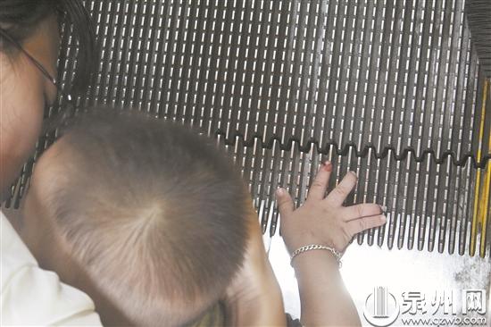 孩子手指卡在电梯底板上