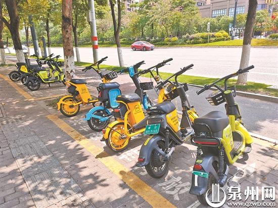 在晋江中心城区,共享电单车有序停放在电子围栏里。