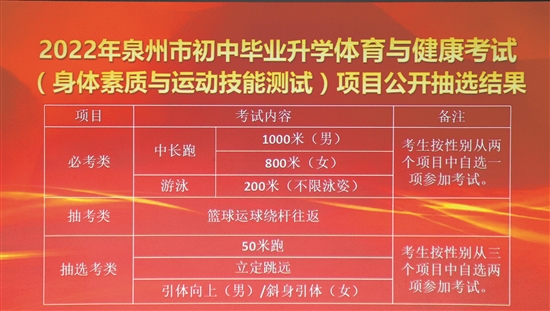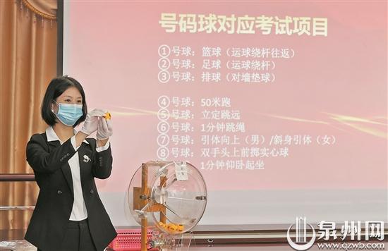 泉州网11月6日讯 (记者林福龙 曾聪虹 庄丽祥 文/图)昨天上午,2022年泉州市初中毕业升学体育与健康考试(身体素质与运动技能测试)项目,以摇号方式举行公开抽选,确定明年泉州体育中考具体项目内容。