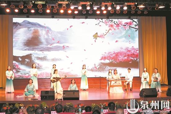 泉州网11月12日讯 (通讯员傅健 记者曾聪虹文/图)二十载非遗传承,二十载守正创新。近日,泉州市培元中学举行了南音校园传承20周年成果汇报展演。该校历年来培养出的优秀南音人才从厦门市南乐团、泉州市南音传承中心、泉州师范学院泉州南音学院、泉州幼儿师范高等专科学校等单位回到母校,以精湛的技艺再登母校舞台,和母校南音艺术团,还有共同体学校一起奉献了一场精彩纷呈的南音艺术盛宴。