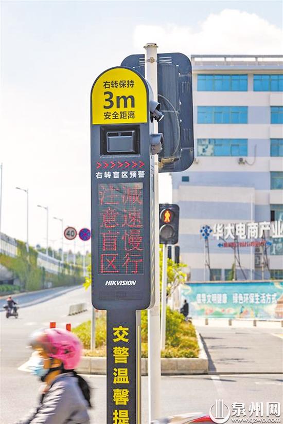 泉州网11月13日讯 (记者 傅恒 通讯员 庄小强 文/图)大型车辆右转时的“内轮差”盲区很容易引发交通事故。近日,丰泽交警在多个路口施划“右转危险区警示带”,并试点安装了大车右转安全预警系统,警醒大车司机和路口非机动车、行人及时避开盲区危险。此外,丰泽交警还在多个路口路段施划了摩托车前置待行区及大型车专用车道,多项举措并行,进一步保障了道路交通安全。