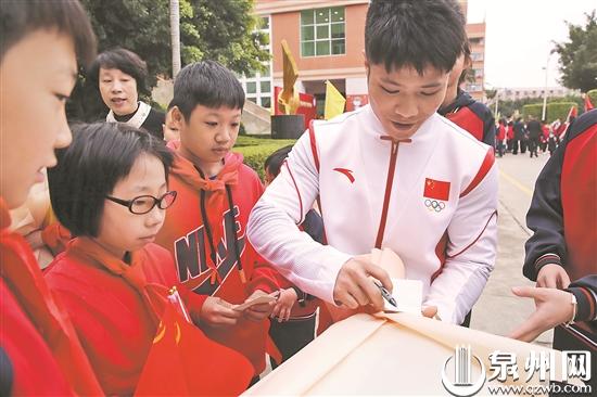 泉州网11月24日讯(记者 吴聪伟 林书修 文/图)23日,李发彬、林超攀、陈海威、陈伟全、邱礼特等十余名泉州市参加东京奥运会、残奥会和陕西全运会、残特奥会获奖运动员代表,走进泉州市体育运动学校,分享“冠军公益课”,近距离与同学们分享参赛经历、夺冠心得,勉励学子们珍惜好时光,用“爱拼敢赢”精神和辛勤汗水去浇灌自己的梦想。