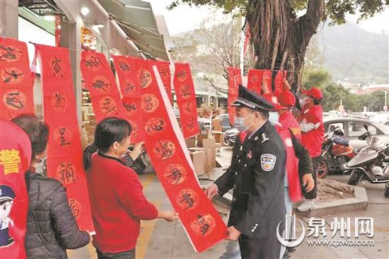 泉州网1月13日讯 (记者陈祥木 苏玮杰 通讯员陈伟明 文/图)1月10日是第二个“中国人民警察节”。当天,安溪城厢派出所组织在安溪茶都广场开展“你好,警察节——挥毫泼墨赠春联,警民同行筑平安”主题宣传活动。